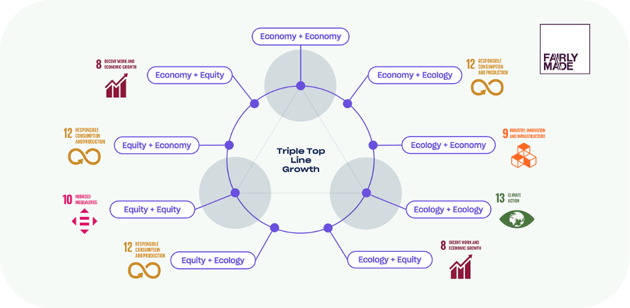 - It treats impact as interconnected: economic success, ecological responsibility, and social equity are not silos – they reinforce each other. Growing one dimension empowers growth in the other dimensions too.