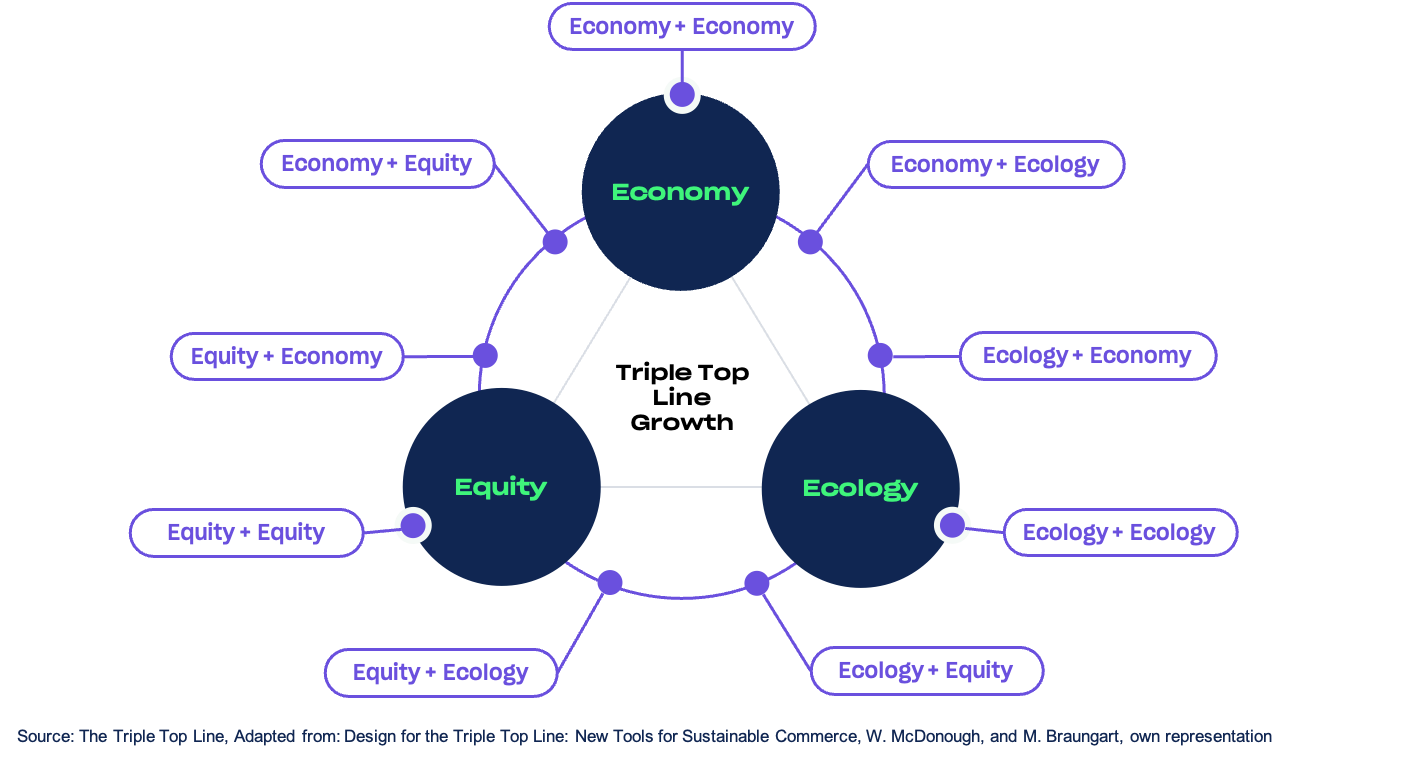 Rather than aiming for trade-offs or balance, the Triple Top Line emphasizes interconnected value creation. Reducing waste, for instance, can not only lower costs but also strengthen customer loyalty. Diverse teams don’t just bring broader perspectives—they often deliver better financial results and more inclusive product design.