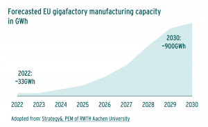 To meet the escalating demand, global battery production is projected to exceed 5 TWh per year of gigafactory capacity by 2030. Europe, in particular, is witnessing significant gigafactory manufacturing ramp-ups, with expectations of nearly 1.0 TWh in EU gigafactory supply by 2030.